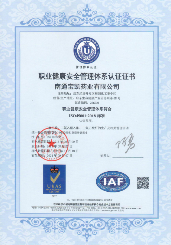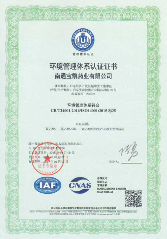 Adresse: Qidong Life and Health Industrial Park, Beixin Town, Qidong City E-Mail: sales@baokaichem.com